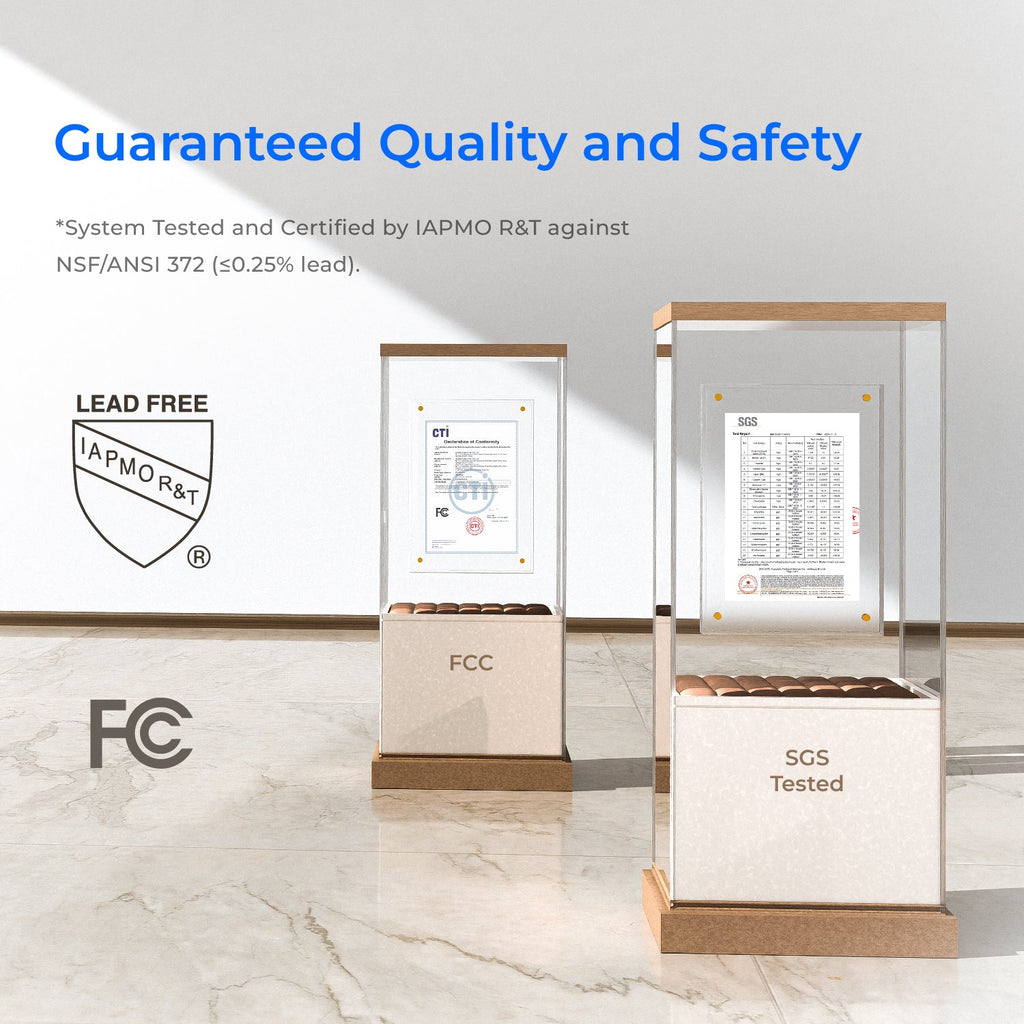 Guaranteed Quality and Safety - System Tested and Certified by IAPMO R&T against NSF/ ANSI 372 (≤0.25% lead)