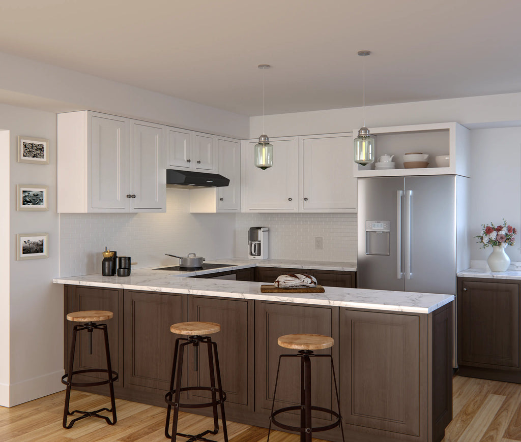 Updated with dual-level LumiLight LED Lighting, the Breeze II’s modern, clean lines provide a perfect complement to any interior. Equipped with 3-speed electronic controls, 400-CFM blower, convenient dishwasher-safe aluminum filters and an auto delay-off feature that clears the air and powers down after 5 minutes. Available in black, white, stainless steel and black stainless finishes.