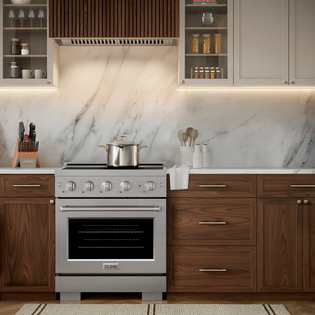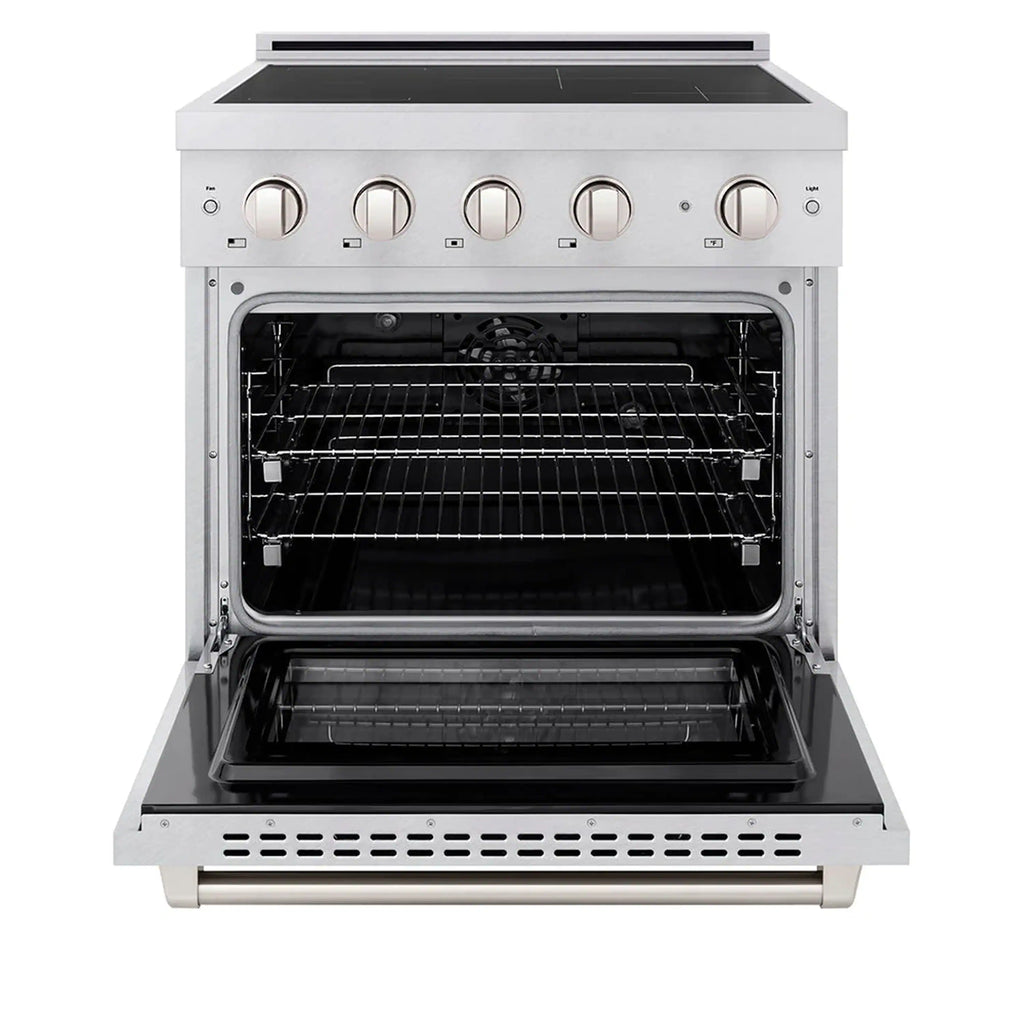 Luxury isn’t meant to be left desired—it’s meant to be attainable. The ZLINE 30 in. 4.2 cu. ft. Paramount Induction Range with 4 Element Cooktop and Electric Convection Oven in Satin Stainless Steel (SINRS-30) combines the versatility of a nanotechnology-reinforced anti-scratch cooktop with anti-glare coating, an electric convection oven with digital thermostat technology, and a Horizon oven door window design allowing you to master every meal. With a modern, timeless style and refined functionality, ZLINE Paramount Induction Ranges are masterfully crafted to deliver an elevated culinary experience.