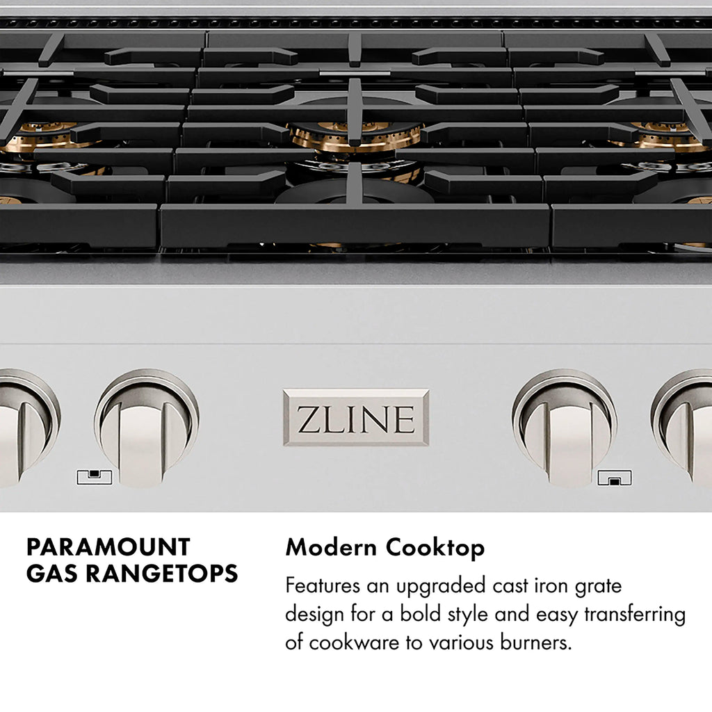 Luxury isn’t meant to be left desired—it’s meant to be attainable. The ZLINE 30 in. Paramount Gas Rangetop with 4 Burner DuoPro™ Cooktop in Black Stainless Steel (PSRTB-30) features a high-powered gas cooktop with 4 hand-crafted Italian dual-ring brass burners and an expansive one-piece porcelain cooktop allowing you to master every meal. Double your cooking power on every burner with a DuoPro™ Cooktop that delivers ultimate flame control flexibility and unprecedented culinary confidence.