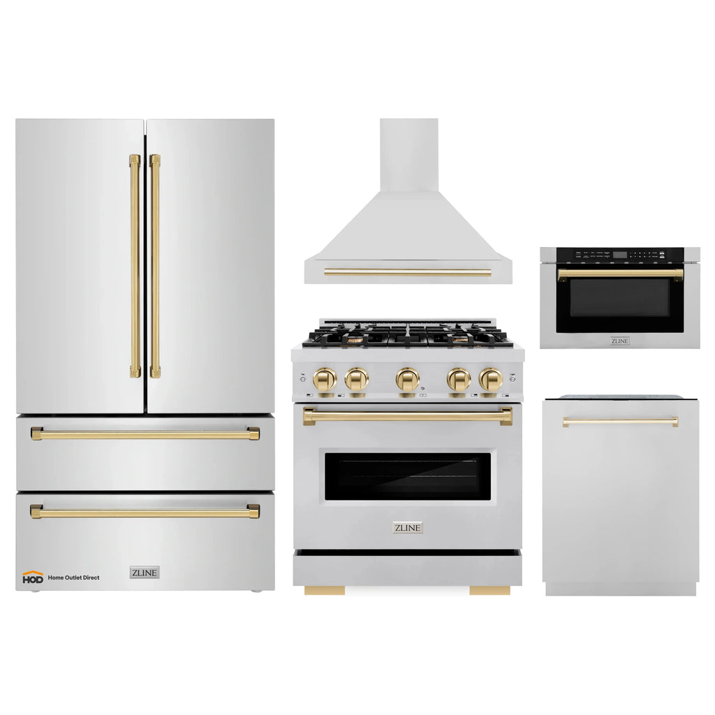 Luxury isn’t meant to be desired - it’s meant to be attainable. The ZLINE Autograph Edition 30 in. 4.2 cu. ft. Classic Gas Range with 4 Burner Cooktop and Convection Gas Oven in Stainless Steel and Polished Gold Accents (CGRZ-30-G) combines the elegance of a hand-finished porcelain gas cooktop with 4 Italian-made auto-reignition burners, a gas convection oven with an energy-efficient cooling fan to ensure quiet operation, a Landscape oven door window design, and stunning polished gold knobs and handle allowing you to master every meal. With a modern, timeless style and refined functionality, ZLINE Classic Gas Ranges are masterfully crafted to deliver an elevated culinary experience.