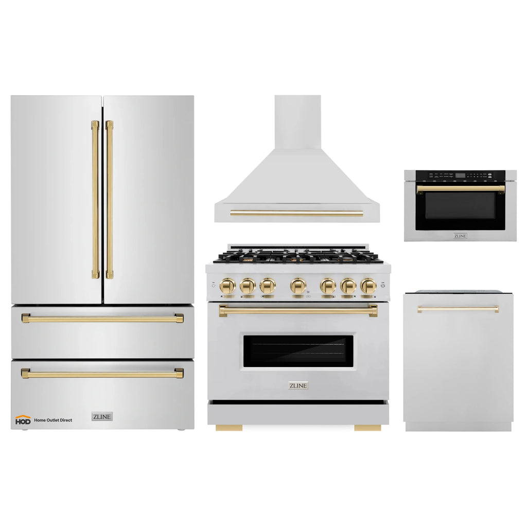 Luxury isn’t meant to be desired - it’s meant to be attainable. The ZLINE Autograph Edition 36 in. 5.2 cu. ft. Classic Gas Range with 6 Burner Cooktop and Convection Gas Oven in Stainless Steel and Polished Gold Accents (CGRZ-36-G) combines the elegance of a hand-finished porcelain gas cooktop with 6 Italian-made auto-reignition burners, a gas convection oven with an energy-efficient cooling fan to ensure quiet operation, a Landscape oven door window design, and stunning polished gold knobs and handle allowing you to master every meal. With a modern, timeless style and refined functionality, ZLINE Classic Gas Ranges are masterfully crafted to deliver an elevated culinary experience.