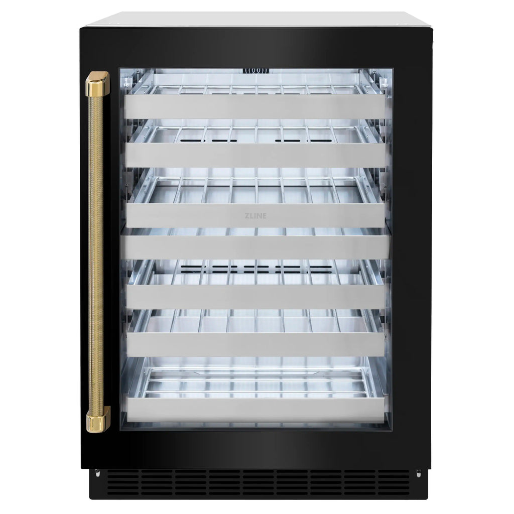 Luxury isn’t meant to be left desired—it’s meant to be attainable. The ZLINE Autograph Edition 24 in. Touchstone Dual Zone 44 Bottle Wine Cooler with Black Stainless Steel Glass Door and Polished Gold Helix Handle (RWDOZ-BS-24-KG) features an outdoor-compatible cooling system and an integrated black stainless steel glass door, giving you ultimate flexibility to host parties of any size. With an elevated level of luxurious design coupled with a stunning stainless steel interior, ZLINE Autograph Edition Touchstone Wine Coolers are masterfully crafted to set a new standard of entertainment for your home—indoors or out.