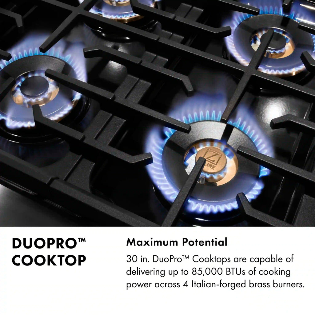 DuoPro™ Cooktop Design - Transform your kitchen into a home chef’s dream with ZLINE DuoPro™, which delivers up to 85,000 BTUs of power, double the performance of most standard 30 in. gas cooktops