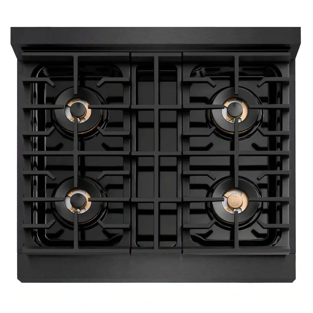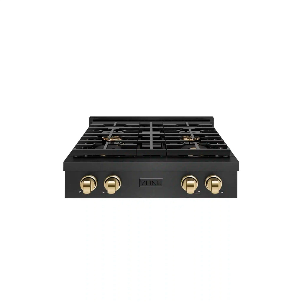 Luxury isn’t meant to be left desired—it’s meant to be attainable. The ZLINE Autograph Edition 30 in. Paramount Gas Rangetop with 4 Burner DuoPro™ Cooktop in Black Satin Stainless Steel and Polished Gold Accents (PSRTBSZ-30-G) features a high-powered gas cooktop with 4 hand-crafted Italian dual-ring brass burners and an expansive one-piece porcelain cooktop allowing you to master every meal. With ZLINE DuoPro™, every burner brings the performance you need—wherever you need it.