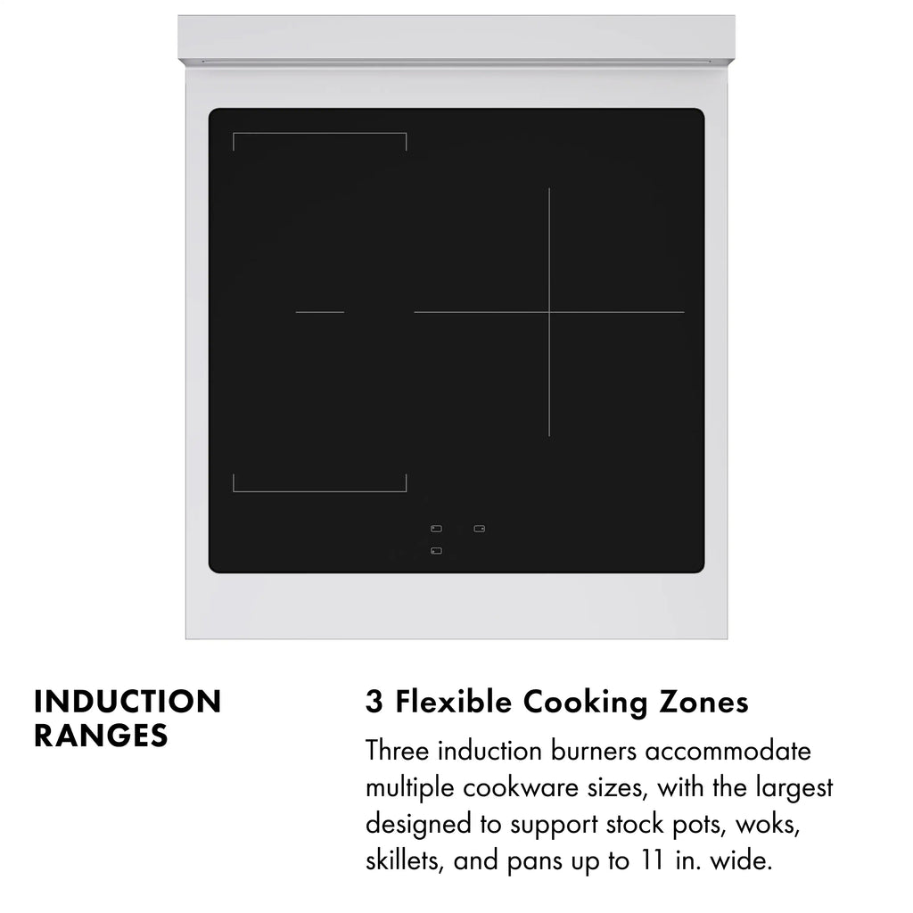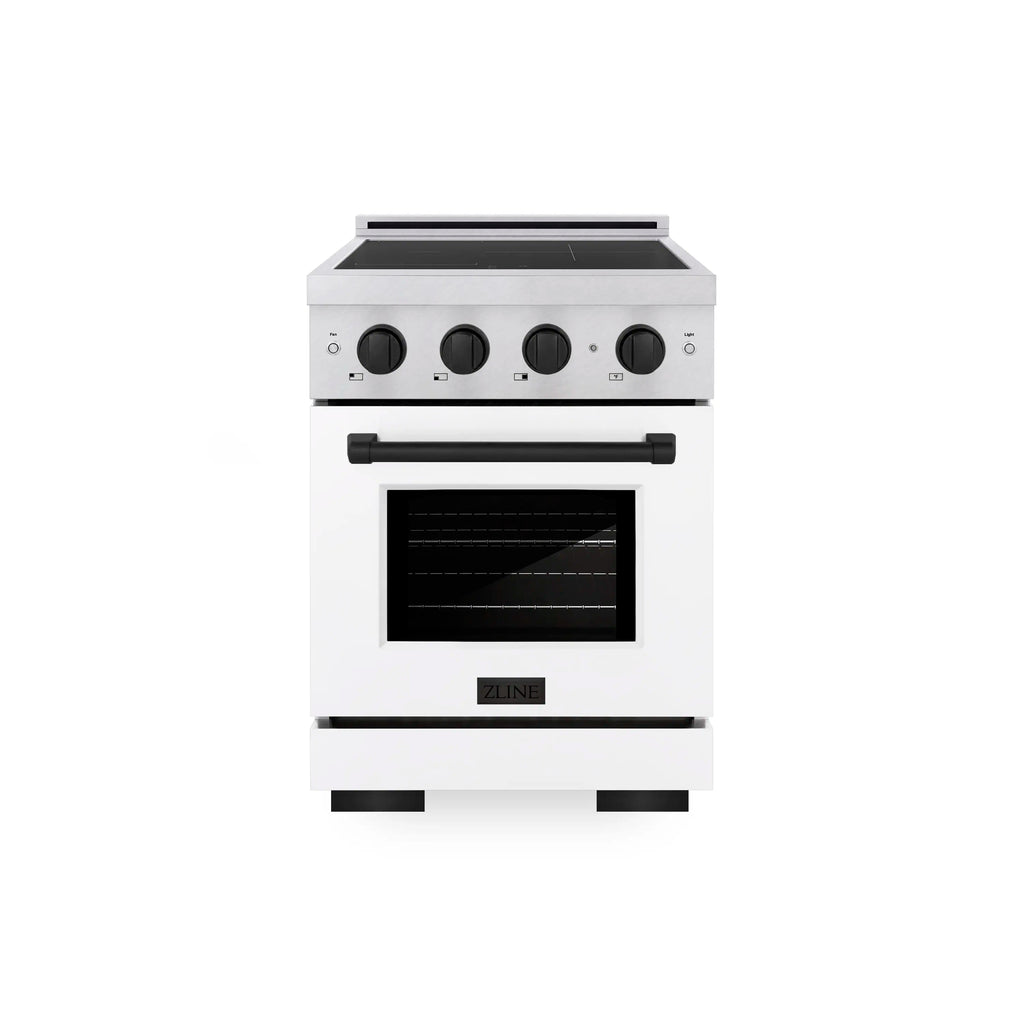 Luxury isn’t meant to be left desired—it’s meant to be attainable. The ZLINE Autograph Edition 24 in. 3.2 cu. ft. Paramount Induction Range with 3 Element Cooktop and Electric Convection Oven in Satin Stainless Steel with White Matte Door and Matte Black Accents (SINRSZ-WM-24-MB) combines the versatility of a nanotechnology-reinforced anti-scratch cooktop with anti-glare coating, an electric convection oven with digital thermostat technology, and a Horizon oven door window design allowing you to master every meal. With a modern, timeless style and refined functionality, ZLINE Paramount Induction Ranges are masterfully crafted to deliver an elevated culinary experience.