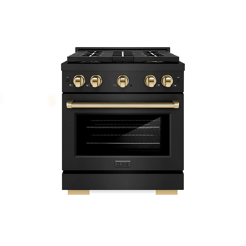 Luxury isn’t meant to be left desired—it’s meant to be attainable. The ZLINE Autograph Edition 30 in. 4.2 cu. ft. Paramount Dual Fuel Range with 4 Burner DuoPro™ Cooktop and Electric Convection Oven in Black Stainless Steel and Polished Gold Accents (PSDRBZ-30-G) features a high-powered gas cooktop with 4 hand-crafted Italian dual-ring brass burners and a versatile electric convection oven allowing you to master every meal. Double your cooking power on every burner with a DuoPro™ Cooktop that delivers ultimate flame control flexibility and unprecedented culinary confidence.
