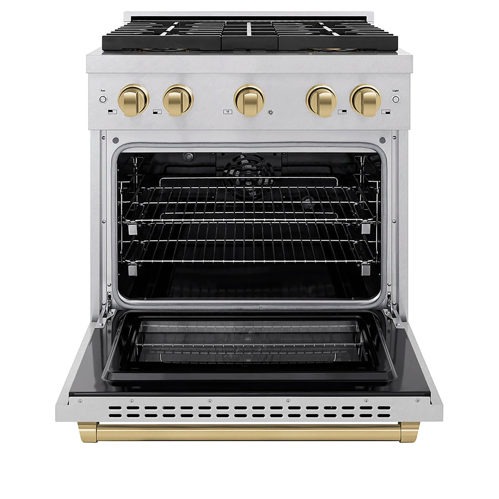 ZLINE Autograph Edition 30-Inch 4.2 cu. ft. Paramount Dual Fuel Range with 4 Burner DuoPro™ Cooktop and Electric Convection Oven in Satin Stainless Steel and Champagne Bronze Accents (PSDRSZ-30-CB)