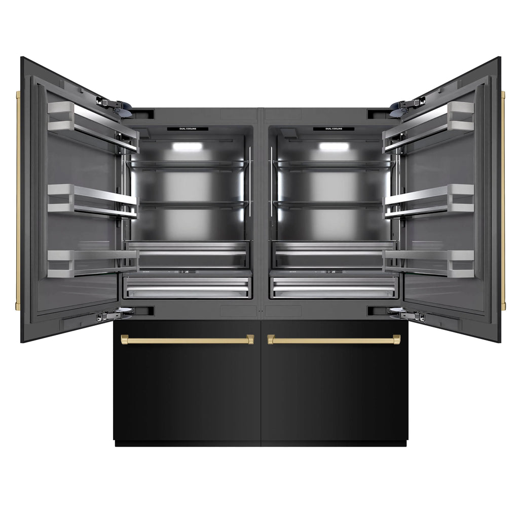Luxury isn’t meant to be left desired—it’s meant to be attainable. The ZLINE Autograph Edition 72 in. 39.6 cu. ft. French Door Built-In Bottom Freezer Refrigerator with Water Dispensers and Ice Makers in Black Stainless Steel with Graphite Gray Interior and Champagne Bronze Accents (GRBITZ-BS-72-CB) provides the ultimate upgrade to the center of your home by pairing premium dual cooling technology with enhanced storage capacity for multiple grocery items. Achieve ZLINE Attainable Luxury® excellence with innovative features designed to enhance your kitchen’s cooling and freezing capability.